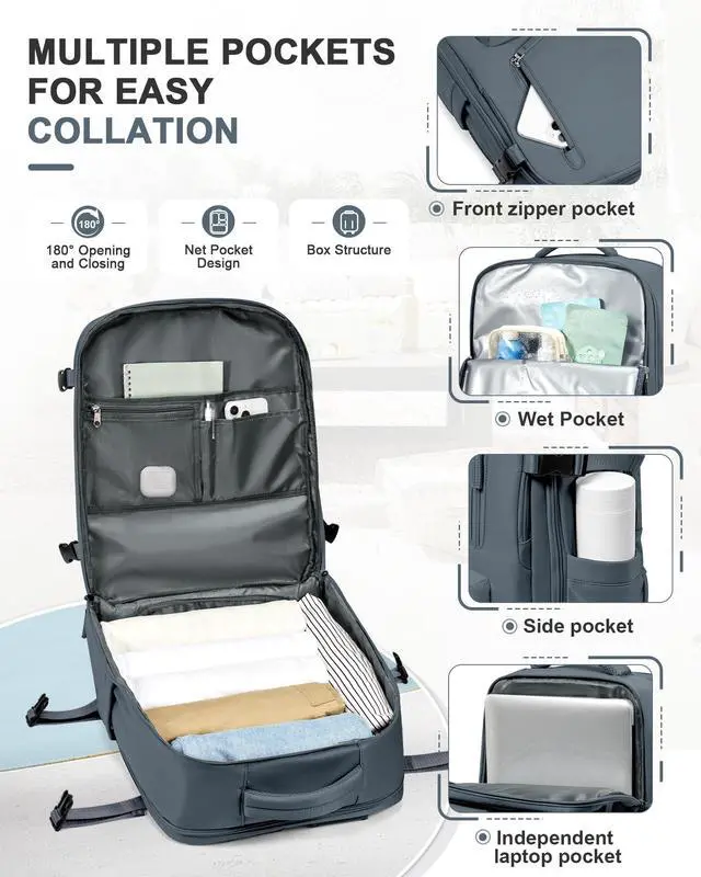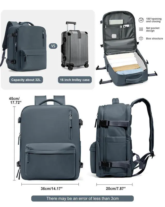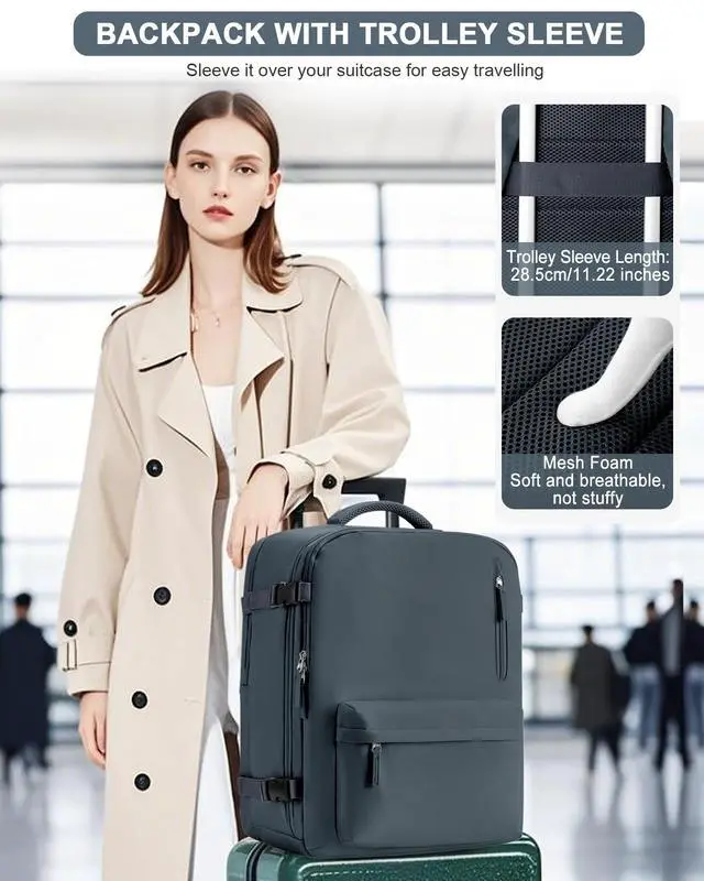 Meet the boarding criteriaThis backpack meets the boarding luggage size requirements of most airlines, ensuring that your backpack can be taken directly on the plane to avoid the trouble of shipping, and is equipped with a backpack strap on the suitcase handle for easy carrying.