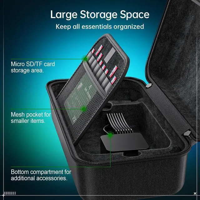 ^^ Large Capacity Storage: The carrying case features multiple compartments to fit the ROG Xbox Ally X charger, docking station, and other accessories. Equipped with a card slot for memory cards, earphones, and credit cards, allowing you to stay organized and travel with ease.
