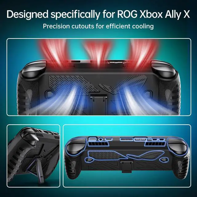Perfect Fit Cover with stand: Made from high-quality TPU, this cover is custom-molded to snugly fit ROG Xbox Ally X 2025, offering full protection while allowing easy access to buttons and ports. Built-in cooling holes prevent overheating, ensuring seamless gameplay.