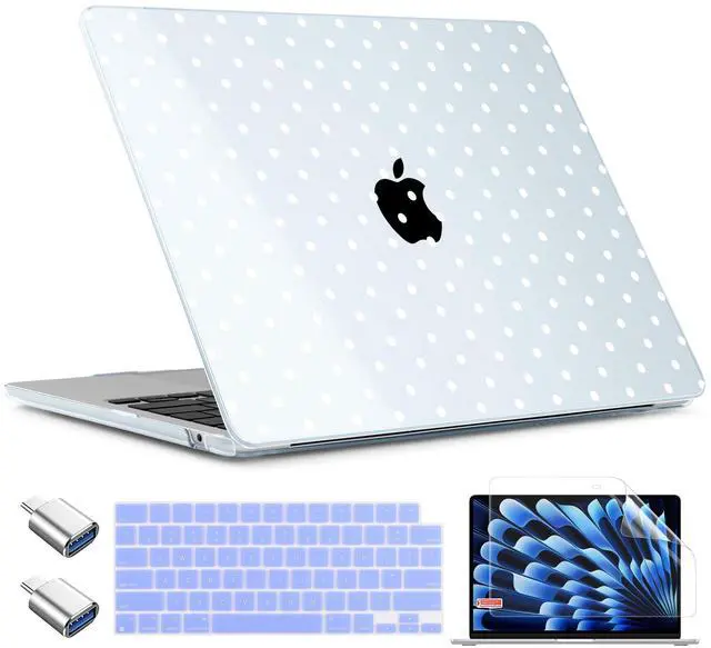 TWOLSKOO for MacBook Air 15 inch Case 2026 2025 2024 2023 Release M5 A3448 M4 A3241 M3 A3114 M2 A2941, Plastic Hard Shell & Screen Protector & Keyboard Cover & Type C Adapter, Blue Polka Dots