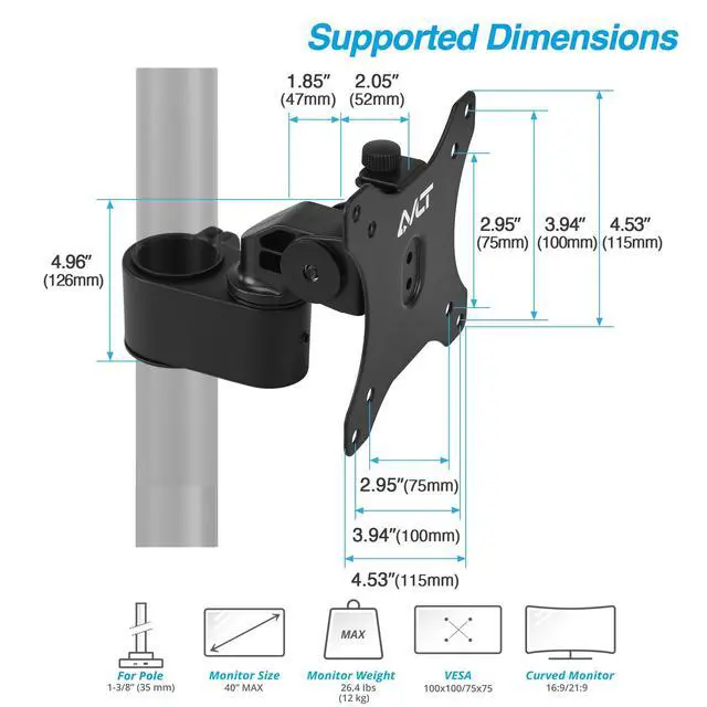 ^^ Fits 17"40" Monitors: Securely holds up to 26.4 lbs (12kg) with VESA 75x75 or 100x100. Ideal for flat, curved, or ultrawide screens. ^^ Pole