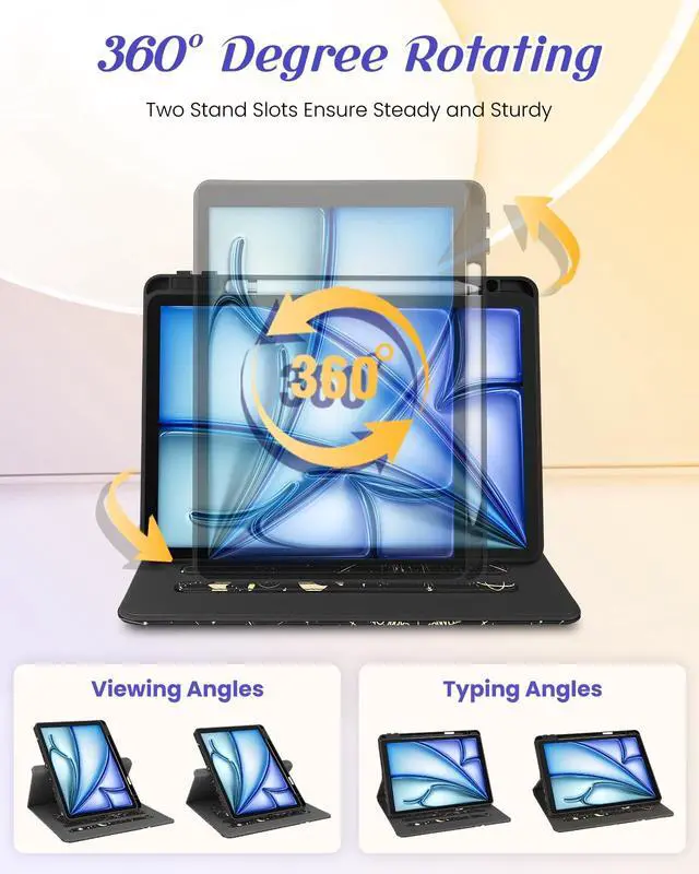 Rotating Stand: This for iPad Air case 11 inch/for iPad Air 5th/4th generation case/for iPad Pro case 11 inch 2020 with an functional rotating stand design, supporting your devices to switch between landscape and portrait orientations. While 2 anti-slip strip design allow for multiple horizontal stand angles for comfortable viewing or typing ^^