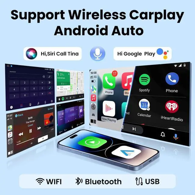 8 Core CPU & Android 13The car radio comes with a powerful Android 13 system that operates smoothly and efficiently. The device features a 8-core processor, generous 4GB RAM and 64GB ROM storage capacities. With built-in WiFi connectivity, you can easily access the internet, and the device supports GPS navigation with online/offline map download and application, our car radio provides enhanced performance and expanded storage options to meet your entertainment needs ^^ Wireless / Wired Carplay & Android AutoThe 2004 Android 13 car radio for ford f150 stereo integrates seamlessly with your smartphone, you can call "siri" or "google to voice-assist control.