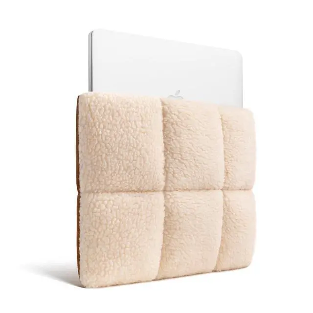 Dual-Faced Fleece Charm - Cozy, cream sherpa on one side of the sleeve is soft and scratch-resistant, while the coffee faux suede on the other side adds elegance. With fluffy filling and quilted design, it's both adorable and stylish, providing a comfortable place for your laptop