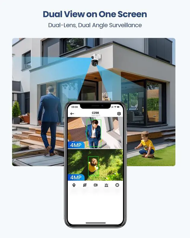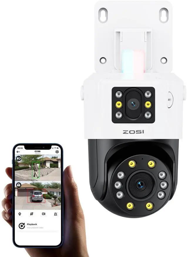 ^^ (3). [ Convenient Setup & Stable Connectivity ] __ This PoE dual-lens camera simplifies installation by using Power over Ethernet (PoE), allowing both power and data transmission over a single Ethernet cableno messy wiring or WiFi needed. A PoE switch or ZOSI PoE NVR is required for operation. Choose to store recordings locally on a Micro SD Card (up to 256GB, sold separately) or on the ZOSI PoE NVR. For added security, consider cloud storage to protect your footage in case of camera damage. ^^ (4). [ AI-Powered Detection & Auto-Tracking ] __ Equipped with advanced AI algorithms, the camera distinguishes between human and vehicle movements, reducing false alarms from irrelevant activity.