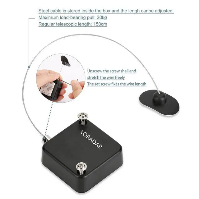 *Fit for all products with curved surfacesLORADAR GinfirmTelescopic steel cable with CM adhesive patch, The Hardware cable lock fit for Suitable for all products with curved surfaces, such as speakers, various bottled products, microphones, remote controls with curved surfaces, etc.