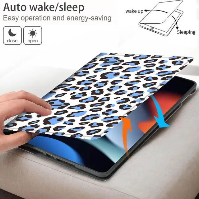 Bxgolkgd Tablet Case for iPad 10.2 Inch (9th/8th/7th Gen,2021/2020/2019),Shockproof Stand Cover with Heat Dissipation,Auto Wake/Sleep Function,Blue Leopard Print