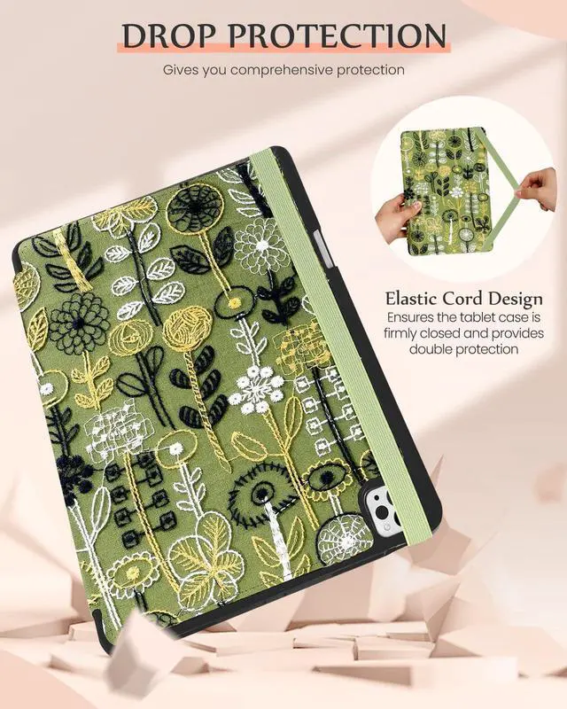 Embroidered Design: Beautifully crafted embroidered patterns add a unique charm for iPad Pro 12.9 case 3rd/4th/5th/6th generation, for iPad Air 13 Inch case M3 2025 &M2 2024, blending art and functionality for a sophisticated look ^^
