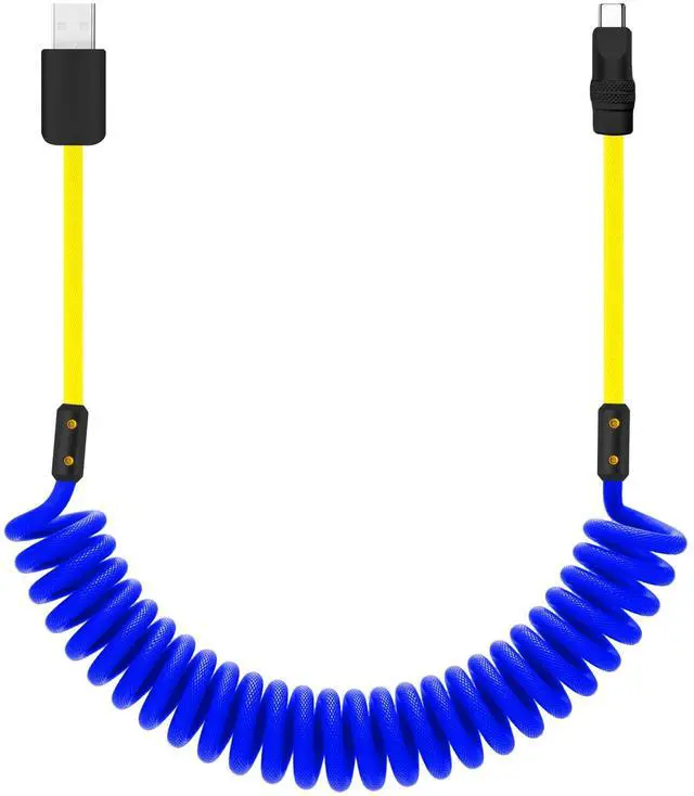 chubbycable Curly Chubby 120W Coiled USB C Cable Retractable Fast Charging Cable for Car Charger Cord Compatible with iPhone 17-15 Series, Blue+Yellow, USB-A to Type-C, 2.29FT-3.6FT