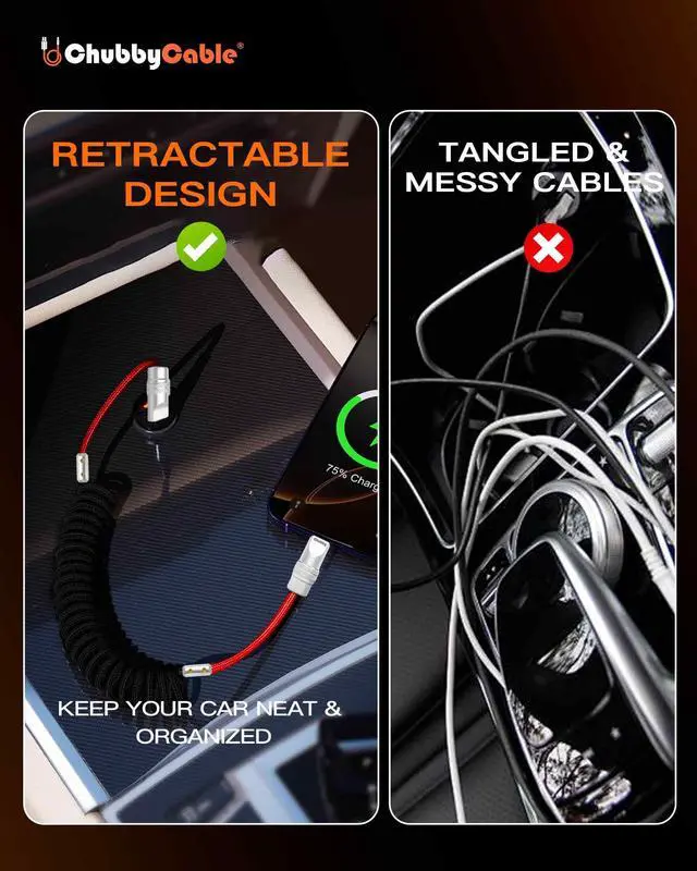 • RETRACTABLE & TANGLE-FREE DESIGN: The coiled structure stretches up to 3.6ft and automatically retracts, preventing tangles and keeping your space organized. Perfect for car, office, or home setups, it delivers convenient charging without the clutter