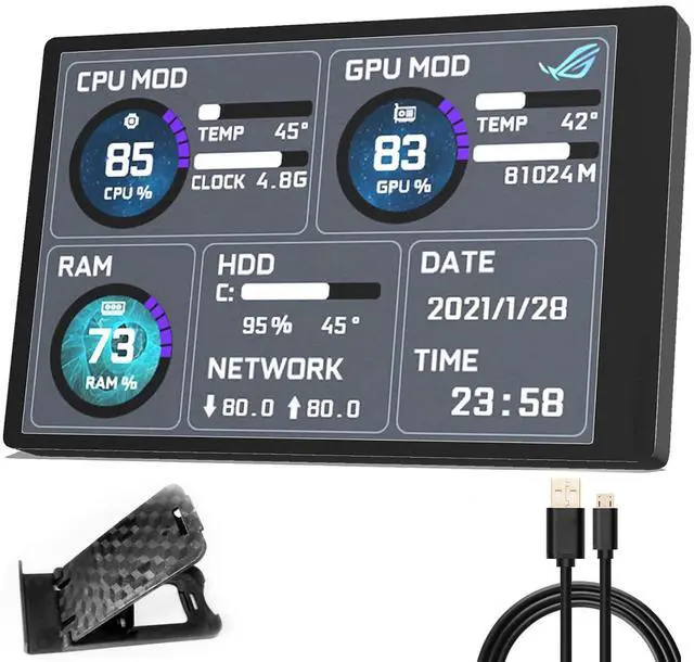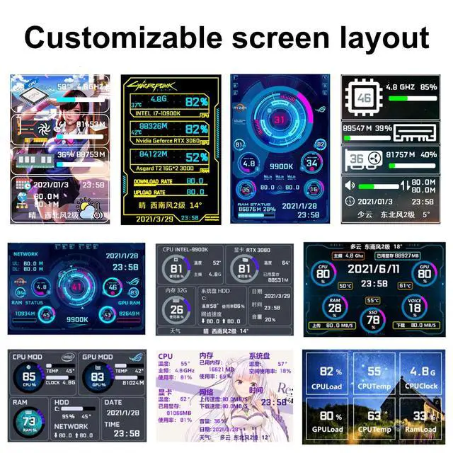 With software in English The PC Temperature Display works creat with our English version software. You can use this with our software as a "second monitor" to view computer's Temperature and usage of CPU, GPU, RAM and HDD Data etc. ^^ Only Use with single USB-C cableOur Computer Temp Monitor only needs the single USB-C cable so it can be mounted completely internally off a usb header without the need of a port on the GPU which is a huge plus to you. No HDMI required, no power required. ^^ Great Viewing Angles & Accurate Information IPS full view.