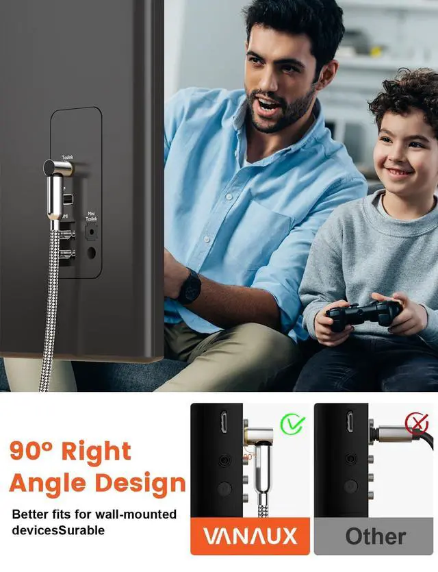 Space-Saving Solution: The 90-degree angled connector allows for a snug fit behind entertainment units or wall-mounted TVs, optimizing space without compromising sound quality.