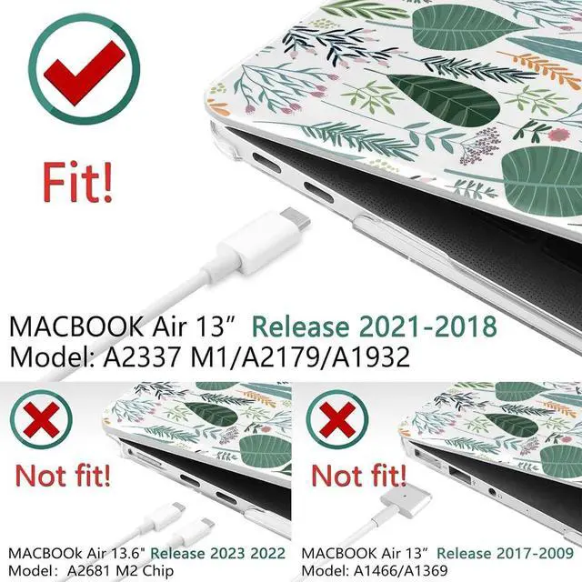 Compatible with: Not fit for 2022 New Arrival For MacBook Air 13 [ 13.6 inch ] Apple M2 chip with Liquid Retina display & Touch ID. Not fit For MacBook Air 13 inch A1466 A13692010-2017 Release). Two pieces snap on design, easy to install and take off. It allows full access to all ports, Touch Bar and Touch ID function. Our laptop Hard Shellanti-slip silicone feet at the bottom shell, it can keep your device firmly in place all the time, Featuring two rows of bottom ventilation, allowing safe heat disbursement to keep your device cool, Featuring all-inclusive design to fully protect your device from drops, downs, scratches, etc from daily using. Ultra slim light weight hard case will not add any weight to your Apple MacBook. You could use while you are working, traveling, studying or playing game