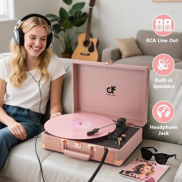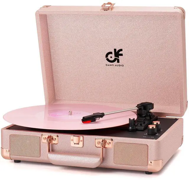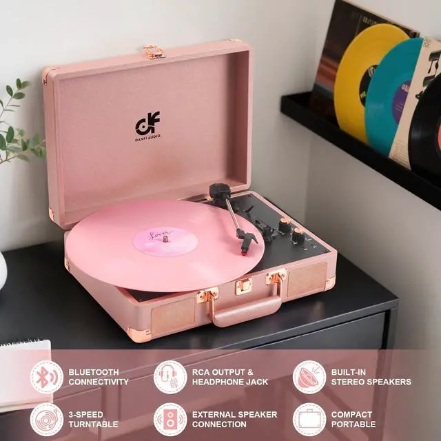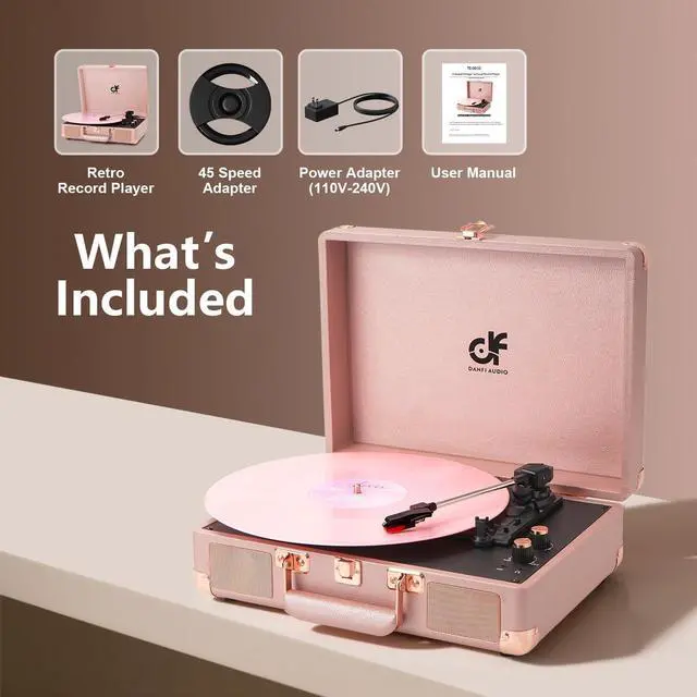 All-in-one Record Player - Revive the retro sound of your albums with suitcase record palyer, featuring bass and treble control, stereo speakers, and support all your favorite 7", 10", and 12" vinyl records at 33, 45, and 78 RPM. ^^ Built in Speakers, Portable, Compact - The DANFI AUDIO record player features built-in speakers, a stylish and lightweight design, and a portable carrying handle. It allows you to play your favorite vinyl records without the need for extra audio equipment, wherever and whenever you like.