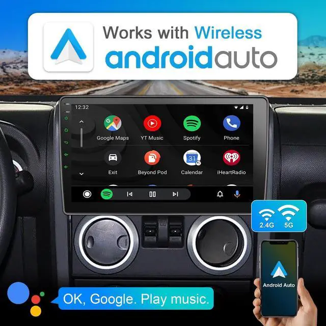 Android Auto: This 2018 jeep wrangler jk radio upgrade supports wired and wireless CarPlay and Android Auto. just connect your phone to the Android 2015 jeep jk radio via Wifi and Bluetooth, you can easily connect your smartphone and control it with voice commands. The 2010 jeep jk stereo can wake up Siri or Google Assistant, allowing you to focus on driving while wirelessly accessing map navigation, answering calls, playing music and other functions ^^ 8 Core Android 12 SystemThis 2007 2008 2009 2010 2011 2012 2013 2014 2015 2016 2017 2018 Jeep Wrangler radio upgrade version adopts the latest Android 12 operating system, with a high-definition touch screen, clear picture quality, rich colors, equipped with 2GB RAM and 32GB ROM, allowing you to experience high performance and low power consumption configuration on the road, ensuring the smooth operation of the car stereo ^^ Bluetooth & Steering Wheel ControlThe 2008 jeep wrangler radio system provides hands-free Bluetooth voice commands, allowing you to focus on driving. Simply say "play music", "GPS navigation" or "make a call" to easily control entertainment and communication, and you can fully control your 2009 jeep wrangler jk radio without taking your hands off the steering wheel.