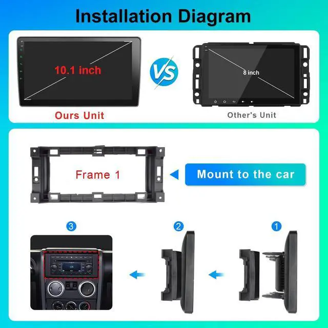 Applicable ModelsApplicable to Jeep Wrangler/Unlimited 2007-2018; Applicable to Jeep Compass 2009-2016; Applicable to Jeep Patriot 2009-2016; Applicable to Jeep Grand Cherokee 2005-2011; Applicable to Jeep Liberty 2008-2011; Applicable to Jeep Commander 2008-2011; Applicable to Chrysler Sebring 2007-2010; Applicable to Town&Country 2007-2010; Applicable to Dodge Grand Voyager 2011-2014; Applicable to Dodge Charger 2008-2010; Applicable to Dodge Ram Pickup 1500/2500/3500 2009-2012 ^^ 10'' HD Touch Screen & Split Screen ModeThe 10-inch 2013 jeep jk radio upgrade is equipped with a 1280x720 QLED HD touch screen for crisp visuals, vibrant colors, and lifelike details.