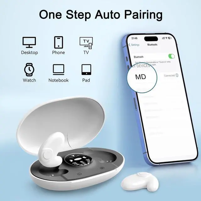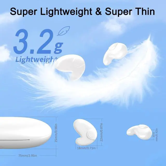 Ultra Thin & Ultra Small only 10.6 mmInvisible sleep wireless earphone IPX5 waterproof use invisible design and ergonomics, allow you to easily perform various activities without worrying about ear fatigue or discomfort, giving you complete freedom when exercising, traveling or working, sleeping ^^ Latest Bluetooth 5.3 & Quickly PairingSide sleeper earbuds use the latest Bluetooth 5.3 chipset to provide faster and more stable signal transmission, clearer and richer audio for this TWS wireless earbuds, so pair easily & Quickly with a variety of devices such as phones, tablets, and laptops. this earbuds offer easy, fast and direct connection ^^ Lightweight & Portable Charging CaseEarbuds for sleeping offers 5 hours of playback time to accompany you to sleep, as well as a mini charging case that provides 20 hours of playback time for the earbuds.