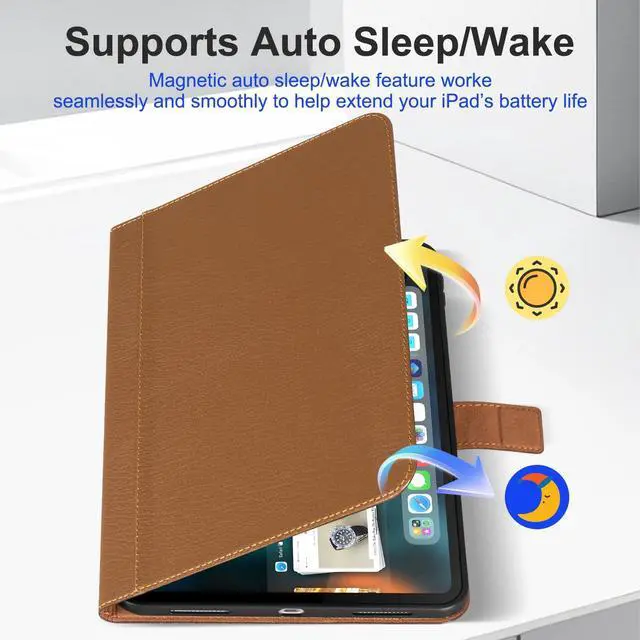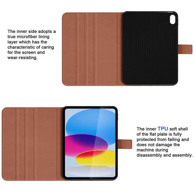 [COMPATIBILITY] - Only compatible with 2025 iPad (A16) 11th gen 11 inch and 2022 ipad 10th gen 10.9 inch(model: A3354/A3355/A3356/A2696/A2757/A2777/A3162), not compatible with any other devices. ^^ [PREMIUM FULL-GRAIN LEATHER] - Crafted from premium full-grain leather, this case offers a soft, tactile feel and develops a unique patina over time, making it exclusively yours. The precise stitching ensures superior durability, providing a sophisticated and professional look for your iPad. ^^ [COMPLETE FUNCTIONS] - Support Auto Sleep/Wake feature; Cover multi-angles stand mode. anti slip and anti fingerprint, Heavey Duty Protection Shockproof. Honeycomb designed TPU shell accelerating heat dissipation, durable for wrestling. The secure magnetic clasp ensures the case stays firmly shut in your bag, protecting the screen from scratches and accidental openings. ^^ [PRECISION FIT & 360ALL] -Round Protection Engineered for a perfect fit with precise cutouts for effortless access to all ports and cameras. Your device is shielded by a 3-layer defense system: the rugged leather exterior, the shock-absorbent TPU inner frame, and the scratch-proof soft microfiber lining. Raised bezels around the screen and camera keep them safe from direct contact with surfaces, ensuring comprehensive protection without bulk. ^^ [ELEGANT COMPANION] -This leather iPad case is an elegant companion for your mobile work and life. Whether you are a business elite, a creative person or an academic teacher and student, whether in a cafe or a studio or on a business trip or in a library or lecture hall, it can provide all-round protection for your iPad.