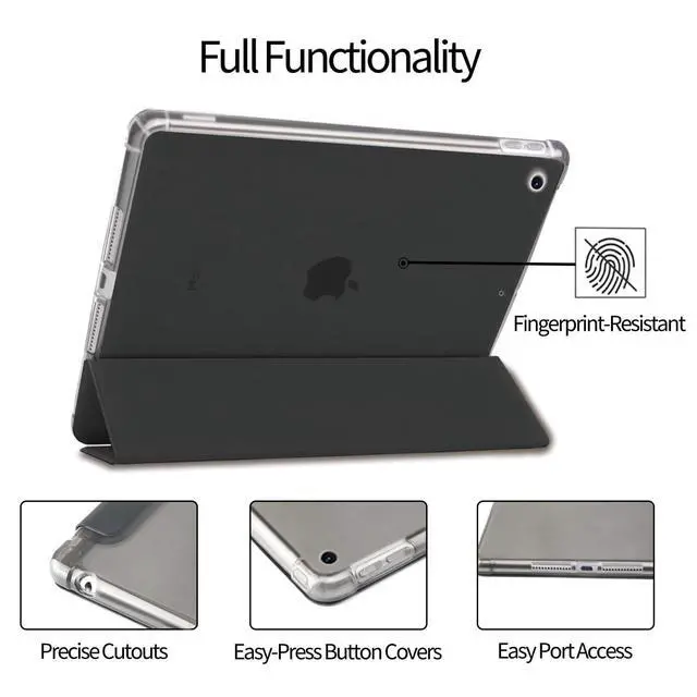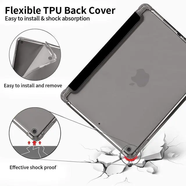Full Protection & Trifold Stand: Hardshell back cover with flexible TPU bumper protects your iPad from shocks, drops and impacts. The triple adjustable stand allows the viewing Angle of the Pad to be adjusted at will for a variety of use cases ^^