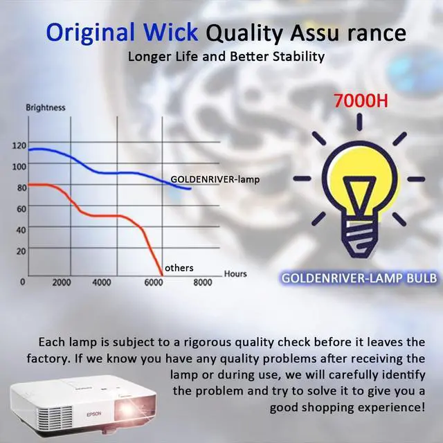 Application: Business, Home, Education, ect. GOLDENRIVER is the only Authorized reseller of GOLDENRIVER Products, Well Customer Service, Buy with confidence. We will take strict quality test before shipment. If any quality issue occured after received lamp or in usage progress, feel free to contact us, we willing to offer our best service to resolve issue.