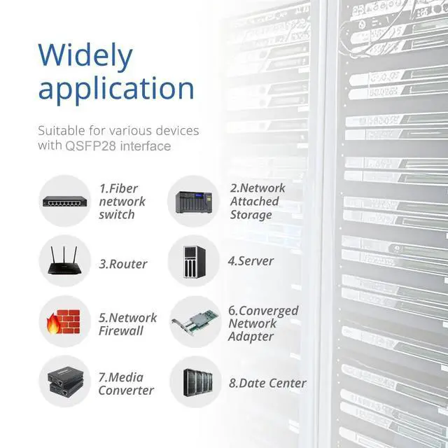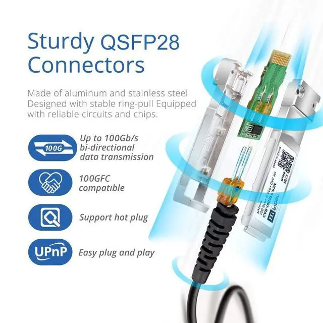 100G QSFP28 to QSFP28 Direct Attach Copper Twinax Cable, Passive, up to 100Gb/s data rate, 0.5 -meter ( 1.64 ft). DAC Length= with 2 QSFP28 connectors. Support Hot-pluggable. ^^ 100GBASE-CR4 DAC widely compatible with Cisco QSFP-100G-CU 0.5M, Ubiquiti, Meraki, Mikrotik, Netgear, D-Link, TP-Link, Linksys, Broadcom, Zyxel, Quanta, Solarflare, PaloAlto, F5, etc. ^^ 100G QSFP28 DAC cable fully compliant with SFF-8436 specification and provide connectivity between devices using QSFP28 ports. ^^ 100G DAC cable is a high speed, cost-effective 100Gbp/s Ethernet connectivity solution designed to meet the growing needs for higher bandwidth in data centers.