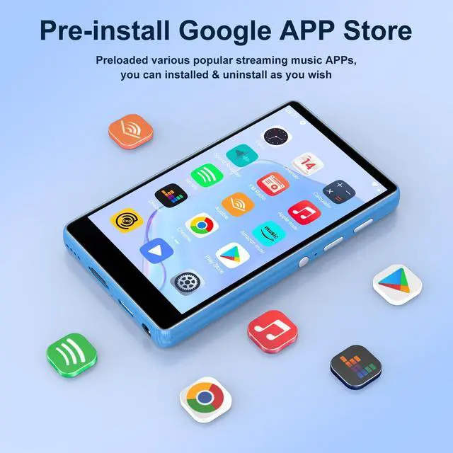80GB Music Player, MP4 MP3 Player with Bluetooth and WiFi with 4-inch IPS Touch Screen Digital Audio Players, M503 Pro Spotify Player with Music, Audible, Chrome Browser, Support Up 512GB Blue