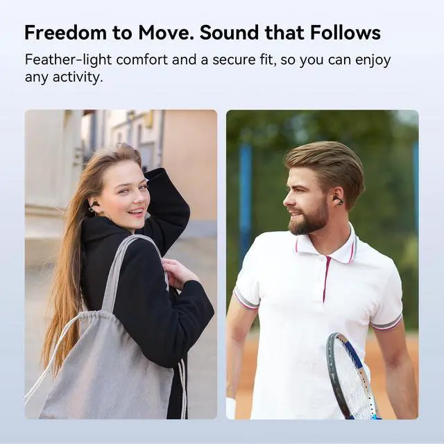Featuring advanced Bluetooth 5.4 for a supremely stable connection ^^ 32-Hour Battery & 60ms Low-Latency ModeNever run out of power with these long-lasting NANK wireless bluetooth clip earbuds. Get 8 hours per charge and 32 hours total using the portable charging case. Activate Game Mode in these clip-on earbuds for an ultra-low 60ms delay, delivering perfectly synced audio for mobile gaming and videos ^^ IPX5 Sweat & Water ResistanceTake these sweat-resistant open-ear headphones anywhere. The IPX5 rating protects these clip on earbuds against sweat and rain, making them the ideal wireless Bluetooth companion for gym sessions and outdoor runs (Note: Do Not Use While Showering. ) ^^ Stay Aware & Quality AssuranceThe ergonomic design of these open ear earbuds keeps you aware of your surroundings with a stable, non-slip fit. We back all our NANK earbuds with a 1-year worry-free warranty, ensuring reliable customer service and support for your peace of mind