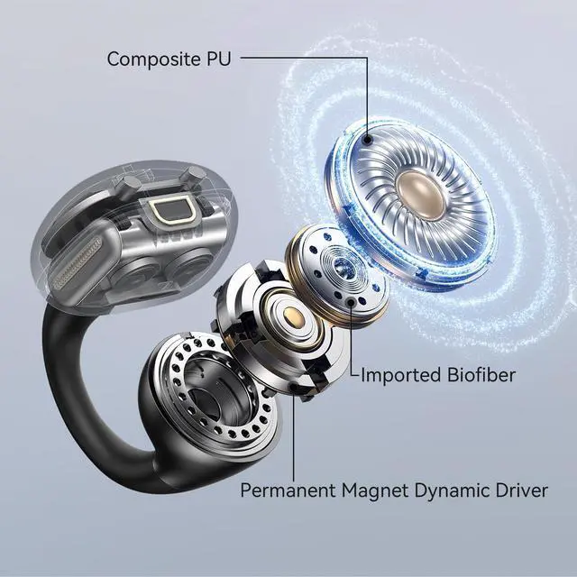 Immersive 3D Sound & AI Clear CallsExperience rich, 3D stereo surround sound through these open ear clip earbuds, powered by the 16.2 mm large ceramic composite diaphragm. DS 2.0 Directional Audio Delivery Technology effectively minimizes sound leakage. AI-Enhanced Call Noise Cancellation ensures your bluetooth clip on earbuds deliver crystal-clear, distraction-free conversations ^^ Featherlight & Secure Fit with BT 5.4W eighing just 5.1 g, NANK Clip Super -- open ear earbuds deliver a weightless feel. The upgraded BUF 2.0 clip on headphones system, combined with the 0.7 mm memory titanium wire and skin-friendly silicone, ensures these clip-on earbuds stay secure and comfortable during any movement.