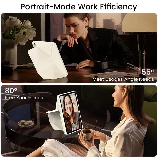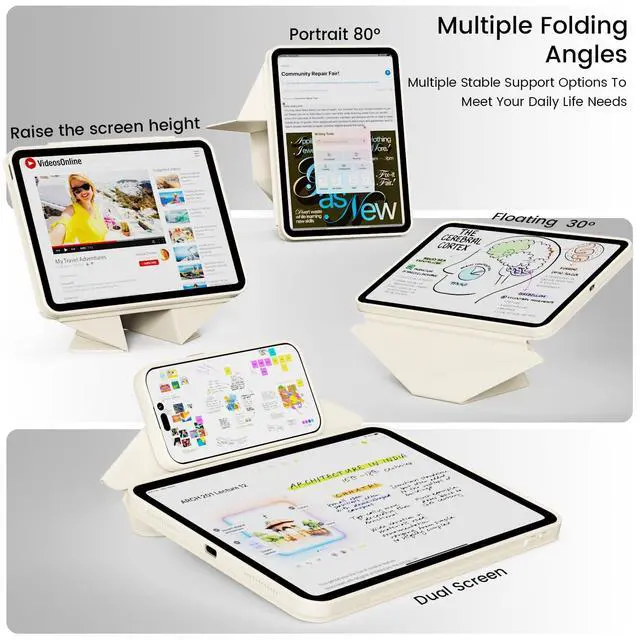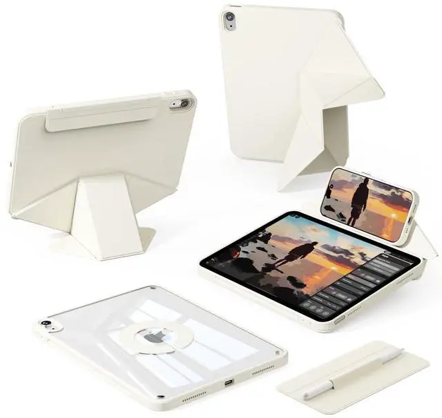 Unlocked 20+ Angles Stand: The Dynamic iPad 10/11 case features a detachable magnetic transparent back cover that rotates 360 degrees. Its multi-fold design unlocks 20+ folding angles, enabling landscape, portrait, and dual-screen usage to boost your productivity and input efficiency.