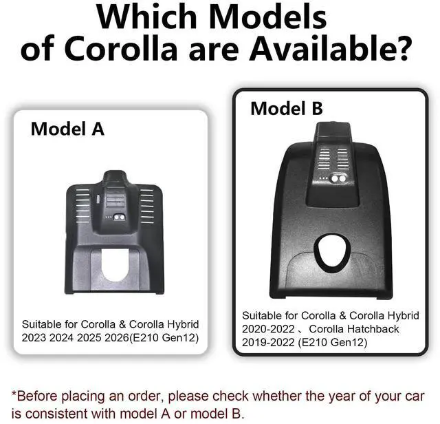 PlEASE CHECK YOUR MODEL CAREFULLY: THE WRONG MODEL CANNOT BE INSTALLED SUCCESSFULLY. Seriously compare THE SECOND PICTURE and THE FIRST PICTURE of Product Description. If you are still not sure which model is suitable for your vehicle style, Please take a photo of your original car sensor cover. and send it to us, and we will confirm it for you. ^^ Custom fit for Corolla 2020-2022 & Hatchback 2019-2022, E210Mangoal Front 4K & Rear 1080p dash cam can fit perfectly behind the rear view mirror like original. No messy wiring exposed, no complicated rewire at all. Perfectly intergrated with Toyota Corolla & Hybrid 2020 2021 2022, LE XLE XSE SE, Corolla Hatchback 2019-2022 Gen12 E210 (Model B), (DOESN'T FIT Corolla CROSS) ^^ Front 4K and Rear 1080POur dual dash cam which records video of up to Ultra HD 4K (3840x2160) +FHD 1080P resolutions. It helps you to read the key details like road signs, vehicle number plates etc. To reduce the blind areas it has the front wide angle of 150 degree and rear wide angle of 140 degree. This helps you during unexpected circumstances like collision to retain and present evidence.
