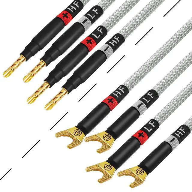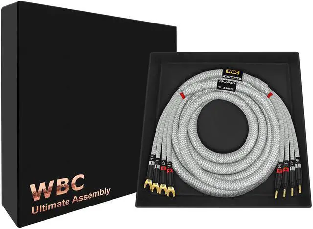 The high-end packaging, makes these a great gift for any Audiophile or Music Lover who will appreciate handcrafted, high quality audio cabling. The braided Tweed cloth jacket and embroidered labeling will compliment your high-end gear quite tastefully; this is truly The Ultimate speaker cable. ^^ At WBC we only use the highest-grade connectors for these audiophile cable assemblies. Eminence 3 micron, 24K Gold plated, audiophile-grade, 4mm (standard diameter) banana plugs with a fully insulated body to prevent accidental shorting & multi-spade connectors, (compatible with 8mm and 6mm binding posts), provide superior abrasion & corrosion resistance and unrivalled performance.