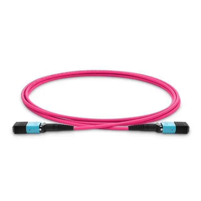 6COM MPO to MPO Fiber Patch Cable,12 Fibers Female, 40G/100G/200G/400G, OM4 50/125 Multimode Standard Loss Trunk Cable, Type B, Plenum (LSZH) with Random Color(Violet/Aqua) - 1m (3ft)