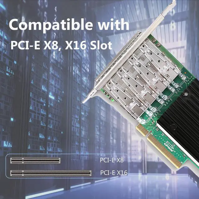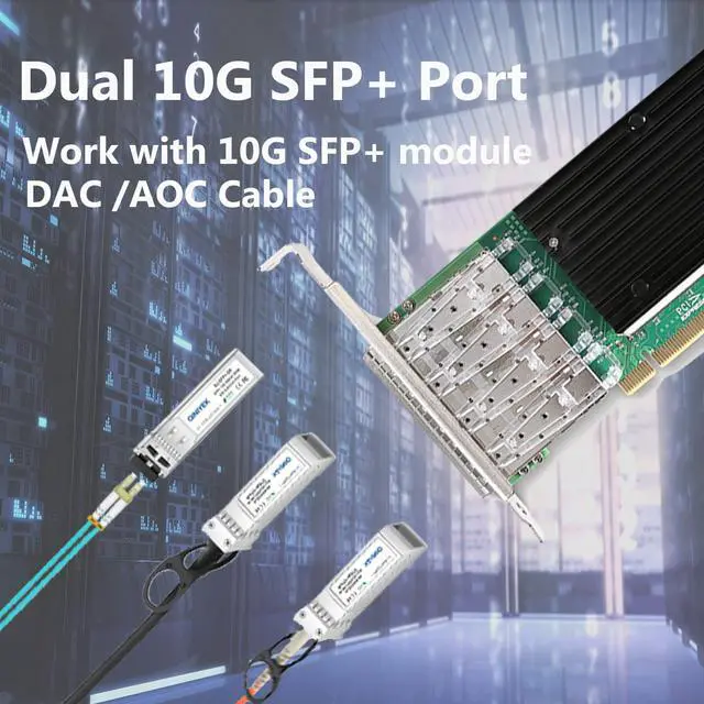 10Gb PCI-E X8 NIC PCI Express v 3.0 (8 G T/s ), suitable for PCI-E X8, X16 Slot. 10Gb Four SFP+ Ports, work with 10G SFP+ module/ DAC /AOC. ^^ Intel XL710-BM1 Ethernet ControllerCompare to Intel XL710-DA4, base on Intel XL710-BM1 Ethernet Controller, with SFP+ connectivity, is the most flexible and scalable Ethernet. ^^ Support Operating SystemsWindows Server* 2012 R2/R2 Core, Windows Server 2012/2012 Core, Windows Server 2008 R2/ R2 Core, Linux* Stable Kermnel version 2.632 /3x, Linux* RHEL 6.5 and RHEL 7.0 / SLES 11 SP3 andSLES 12, Free BSD* 9 /10, UEFI* 2.1 / 2.3, VMware ESXi 5.51 ^^ Half & Full Height bracketThe package include Half & Full Height bracket, suitable for standard computer case and small size computer case/server, easy to install.