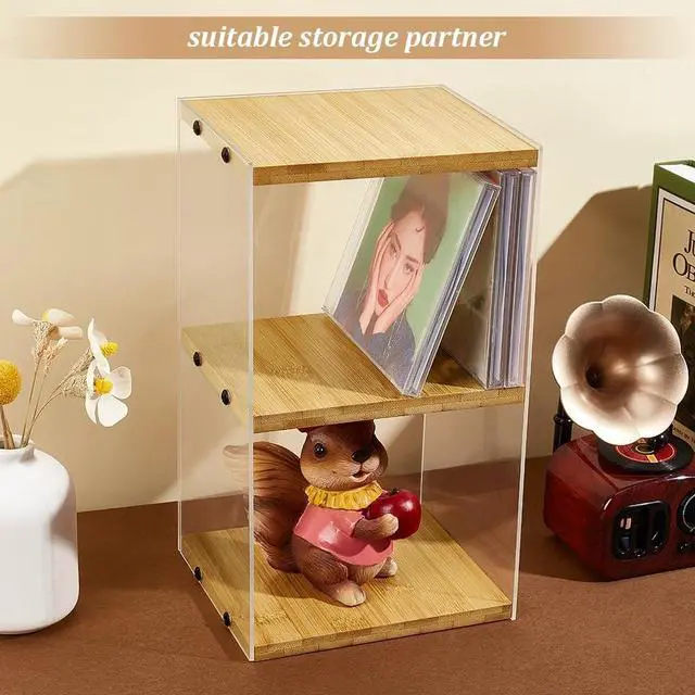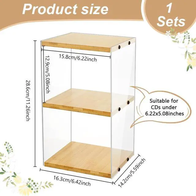 Quality Materials: This CD holder is mainly composed of bamboo wood and acrylic panels. The acrylic sheet is 4 mm thick and less prone to breakage than clear plastic. 10 mm wood provides more support than regular clear plastic. The smooth bamboo wood finish complements the acrylic, and the combination of materials ensures longevity and aesthetics.