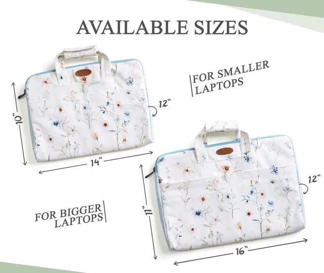 Artsy Designs and Vibrant patterns in vibrant colors provide huge visual interest, setting our bags apart. It is a versatile choice for just daily use, travel or commuting and a true delight to carry around. ^^ Comes in two sizes o Small 14 Width, 10 Length, 1.2 Deep (Outer dimension) Compatible with 12- 13.3 Laptops / Ultrabooks, 13- 13.5 Laptops / Notebooks / Ultabooks. o Large 16 Width, 11 Length, 1.2 Deep (Outer dimension) Compatible with 15 Macbook air / Macbook pro, 15.3 ipad pro and most 14- 14.56 Laptops / Notebooks / Ultrabooks.