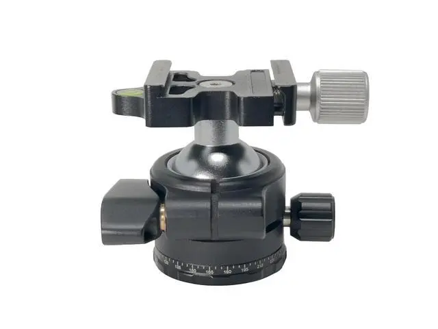 The Platyball Traveler is a revolutionary professional ball head that combines compact design with impressive functionality. At just 9.7 ounces, this lightweight yet robust head can support up to 15 pounds of gear, making it ideal for both lightweight travel setups and professional equipment. Standing 2.75 inches tall, it features a unique ball-locking lever that can be repositioned for optimal access regardless of orientation. The head includes precise controls with a dedicated panning lock knob and Arca-type clamp system. Its thoughtful design incorporates multiple indicators including millimeter-marked clamp slides, a bubble level, and 360-degree panning markers in 5-degree increments.