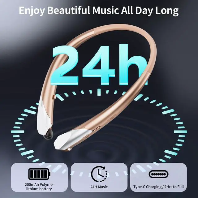 Neckband & Retractable Earbuds The ergonomic neckband design ensures all-day comfort, making it easy to wear the wireless headphones around your neck. With retractable earbuds, you can adjust the wire length to your preference, and a simple press of the retract button neatly stores the wires back into the Bluetooth headphones. ^^ High-Quality SoundThese earphones are equipped with advanced Bluetooth 5.1 and upgraded CVC 6.8 noise-canceling technology, delivering immersive, high-definition audio with crisp treble, rich clarity, and powerful bass. The enhanced noise cancellation blocks out ambient noise effectively, ensuring clear, uninterrupted calls and superior sound quality for both conversations and music.