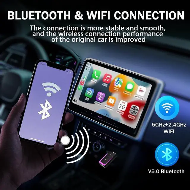 Android Car Wireless Adapter: Use Wireless Android Car Adapter for Android 11 or above, the adapter integrates seamlessly with CarPlay, enabling you to access navigation, music, calls, Siri/voice assistant and more, while maintaining the pristine audio quality enjoyed by your car.