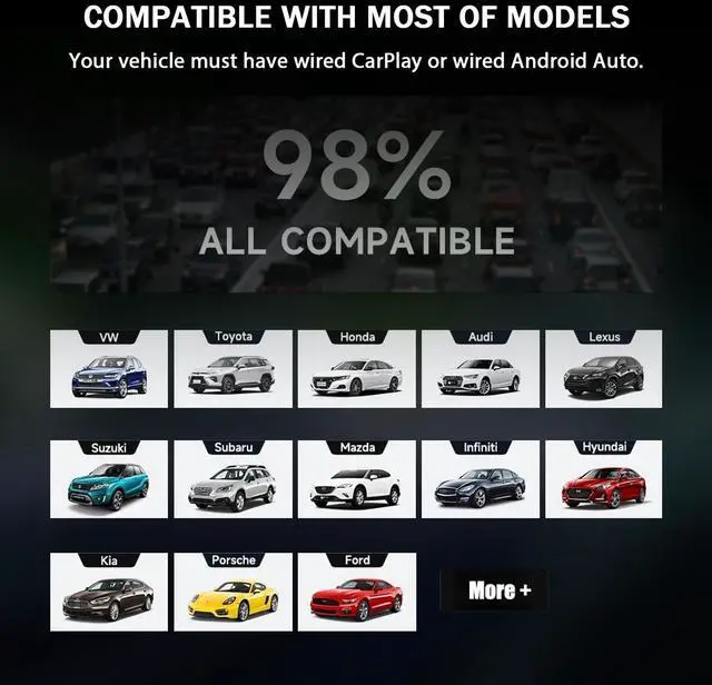 Apple Car Wireless Adapter: The Apple Wireless CarPlay Adapter is compatible with all vehicles that support wired CarPlay and iPhones running iOS 11 or later.