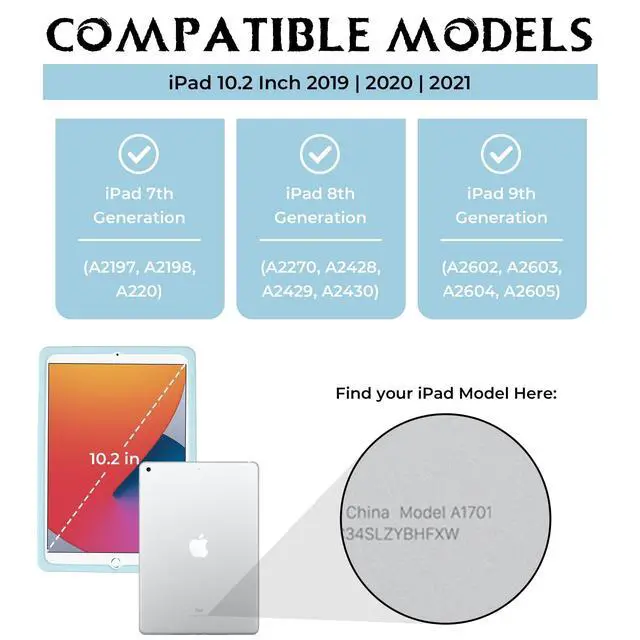 Perfect Fit for Multiple Models - This versatile, high-quality case fits the iPad 9th, 8th, and 7th generations 10.2 -inch models. Providing reliable protection for various iPad versions, making it a value-packed purchase for growing families. Compatible Models 9th