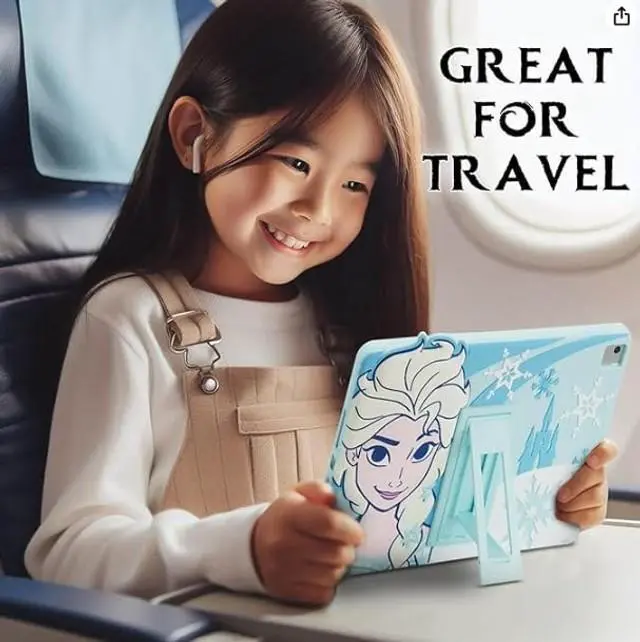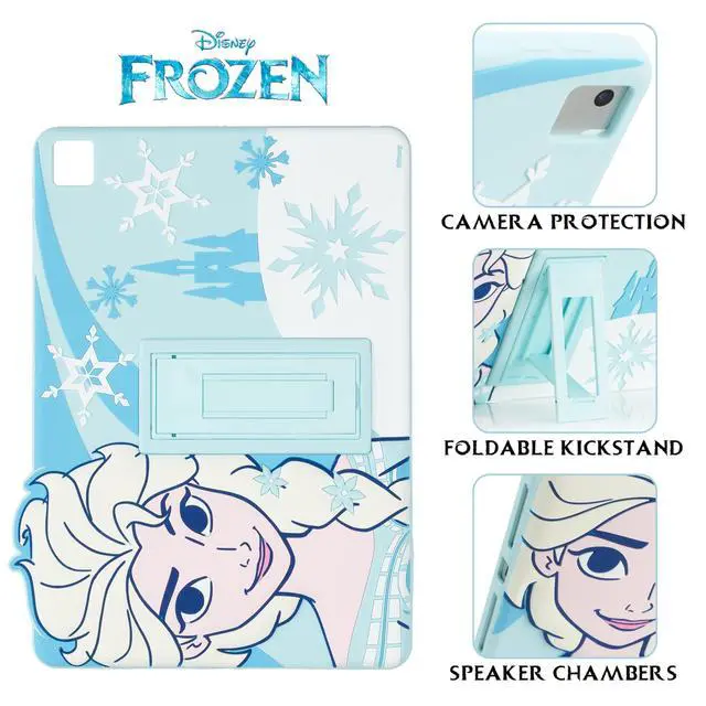 Compatible with the 9th, 8th, and 7th generation iPads, this case ensures durability so your child can play like Elsa and Anna. Each case has been drop tested up to 3 feet high. ^^ Perfect Gift - Delight your child with our officially licensed Disney Frozen iPad case featuring a vibrant image of Elsa! Perfect for birthdays, holidays, or just because, this case brings joy and excitement. With durable, shockproof protection, their device stays safe while they explore the magical world of Arendelle!