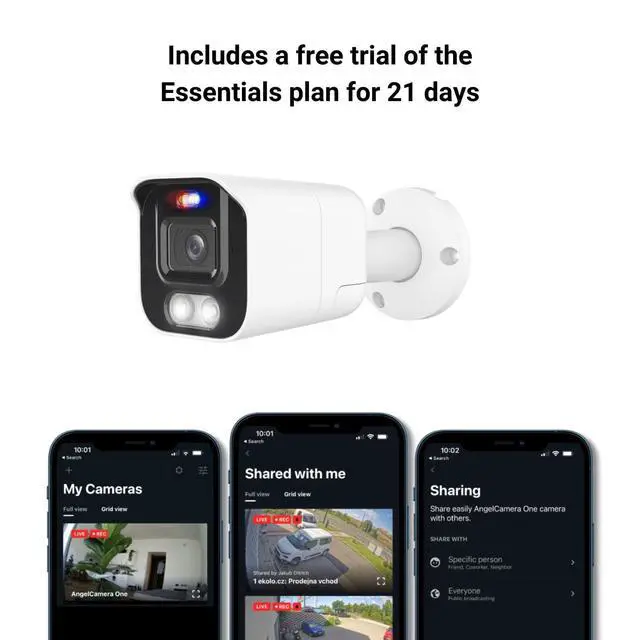 can: Connect up to 10 cameras from different brands and manage them on a single platform. Monitor remotely with the Angelcam app for iOS and Android. Share live video or recordings easily with stakeholders, partners, or security teams. Expand anytime with flexible cloud storage and simple camera additions. Receive automatic firmware updates to keep your AngelCamera Two secure and efficient. Why AngelCamera Two? Setting up and managing multiple security cameras can be time-consumingespecially across different brands. AngelCamera Two eliminates the hassle with plug-and-play installation and an all-in-one video management platform. From real-time alerts and deterrence features to seamless device integration and advanced management, it gives you complete control over your security system. No static IPs or complicated router setups required. Compatible with 200+ IP camera brands. Custom notifications and API integrations for tailored workflows. Expandable network supportadd new cameras and advanced features anytime. What Youll Get with