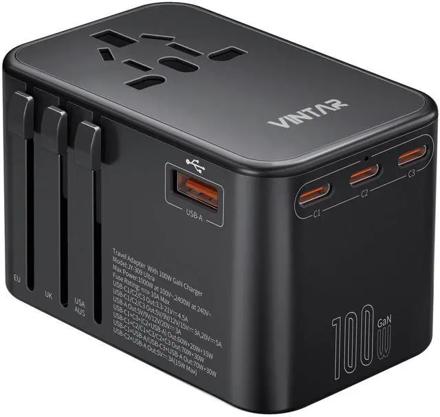 GaN Fast Charging: This universal travel adapter has 5 USB ports, all of which support PD 3.0 and QC 3.0 fast charging. The single USB-C PD port can reach an incredible high speed of 100W. Your laptop can fully charge in just 1.8 hours. It is ideal for most of your USB devices, especially laptops, smartphones, tablets, power banks and cameras ^^ 6-in-1 Universal