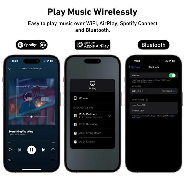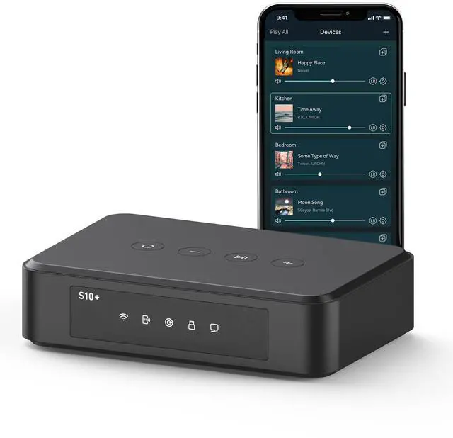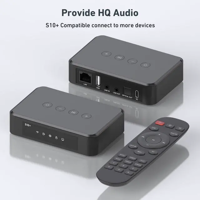 Wireless Sound Streaming: S10+ is a high-performance wireless audio receiver that supports WiFi, Bluetooth, AirPlay and Android wireless streaming technology, making it convenient for you to play music wirelessly to speakers. Designed to enhance your music and online streaming experience.