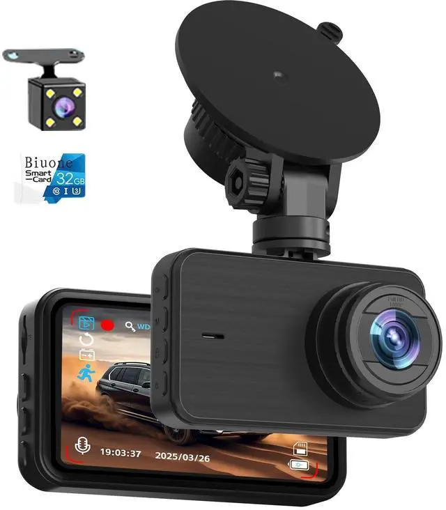 Note: We recommend setting the G-sensor to low sensitivity ^^ High-Resolution Night Vision Front and Rear Dash Cam --- Featuring 6 glass lenses and an F 1.8 large aperture, this dash cam offers automatic exposure (with manual adjustment available), infrared night vision, and high dynamic range technology. It captures more light, ensuring clear images even in low-light conditions. Whether it's a rainy night or a dark road, this camera vividly records car license plates and road signs. The front and rear dash cam supports up to a 64GB memory card ^^ Reverse Assistance Parking Dash Cam --- Connect the red wire of the rear camera to your cars taillight for automatic reverse image display when the car is in reverse gear, helping with safer parking. The front and rear cameras come with a 32GB card and all essential features. If you have any questions about the cameras, feel free to contact us, and well respond with a solution within 12 hours ^^ Intimate After-sale Service --- Our dash cam front and rear offer 1 year shelf life and lifetime professional technical assistance, if you have any product questions, like accessories missing or damaged, please email our customer service, we will quickly answer you and solve the problems for you