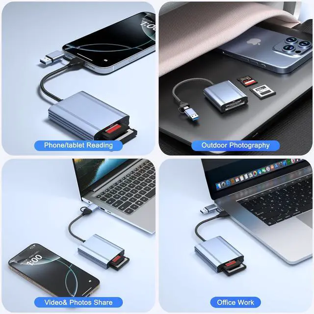 CFexpress type-b and sd card dual-slot reader: To meet the critical demand of professional photographers and videographers for high-speed, reliable data transfer, Zaievo introduces this dual-slot professional card reader. Combining cfexpress type b & sd card dual-slot performance, broad compatibility, and a rugged aluminum alloy design, it serves as an indispensable partner in your efficient workflow. (Not compatible with CFexpress Type A/C and XQD cards) ^^