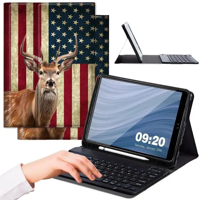 ^^ Thoughtful Design: Built-in pencil holder is convenient to store and carry stylus pen for Ipad to avoid the risk of losing the pencils; The iPad 9th Generation case with keyboard contains a non-slip lining and supports a multi-view bracket, allowing you to adjust the viewing angle while keeping your tablet stand steadily; The detachable keyboard allows you to easily switch between laptop and tablet mode; This iPad case with keyboard has a magnet so the keyboard doesnt move when typing.
