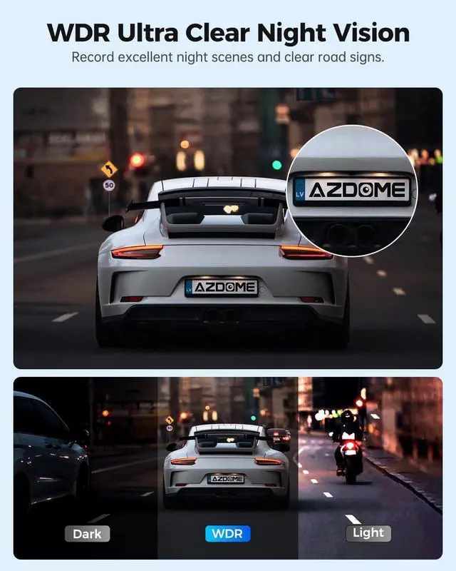 Built-in WiFi: With the built-in WiFi, User could connect this dash cam to iOS or Android phone. Using the AZDOME App, User could veiw, downlaod, share the videos and more. ^^ 1296P Front Dash CameraAZDOME M300 offers 1296P resolution high definition video. User could easily view vehicle's plate number, road signs.