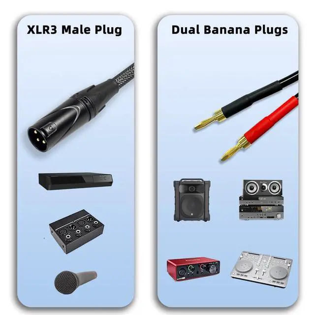 Makes stereo audio more conservative and effective, and makes your experience more immersive. ^^ Scenarios of useThis speaker cable with banana plugs can be used for Power AMPAudio MixerSpeaker, home theater equipment, Network Stereo Receiver, live house music performance, stage show, Audio recording room, DJ equipment ^^ Easy InstallationPlug and Play. Connect a XLR plug to a power amplifier or Audio Mixer, and banana plug to a Speaker as well. ^^ After-Sales Customer ServiceWe will provide a 7*24hrs customer service. If you have any problem or complain about our product, please feel free to contact us, and we will give you a respond ASAP.