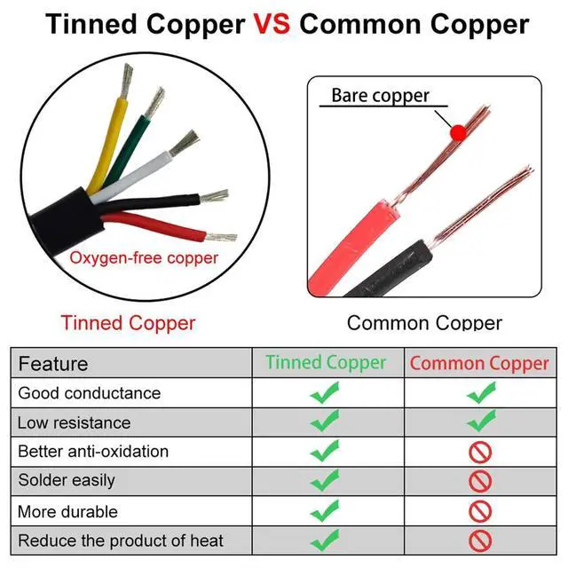 Environmentally friendly PVC material is durable and flame-retardant, with high-precision tinning and oxygen free copper. The PVC insulation layer is made of plastic material, which is wear-resistant, fire-resistant, and antifreeze resistant. It is safe, flame-retardant, reliable, and self extinguishing after leaving the fire. It has six core advantages (pure copper tinning, environmentally friendly material, official certification, Accurate length, low eccentricity, and system certification)
